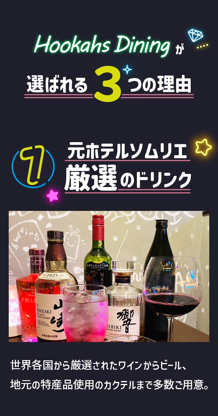 1,650円 550円〜 550円 605円〜 550円 660円 770円 660円〜 550円〜 770円〜 770円〜 2,420円 2,200円 店名 Hookahs Dining(フーカーズ ダイニング) 住所 〒558-0003 大阪府大阪市住吉区長居2丁目10-17 アクセス JR阪和線長居駅から徒歩4分 電話番号 090-3671-9011 営業時間 18:00-24:00(L.O.23:30) ※ランチ営業開始 詳しくは Instagram まで 定休日 火曜日 席数 1階15席/2階16席 支払い 現金、クレジットカード、QRコード決済可